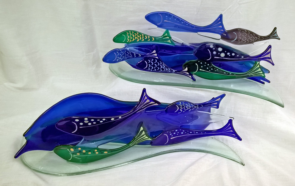 I also do fused and slumped glass, I have a  range of  'hot' glass bowls and platters, from small trinket bowls to large display dishes. There are also one-off fused panels, mainly on the theme of the sea, each one is unique so you will get a piece of art that no-one else will have.
